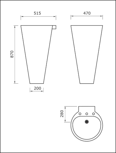 Lavatorio de Pie en acero inoxidable de forma cónica, textura exterior satinada.