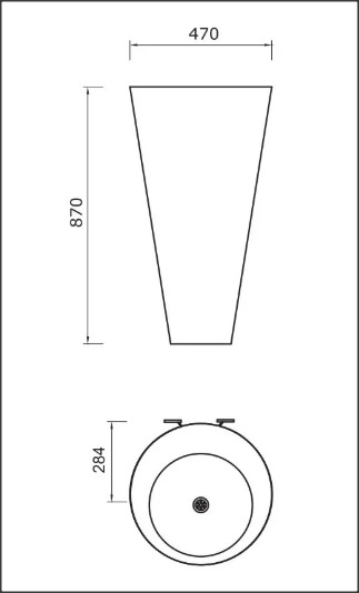 Lavatorio de Pie en acero inoxidable de forma cónica, textura exterior satinada.